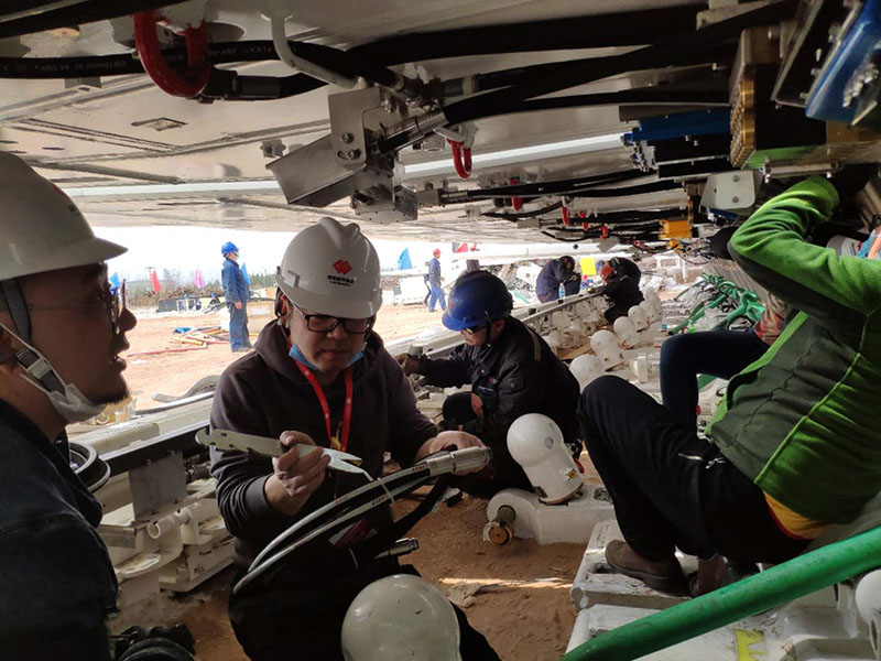 受工作面特殊性影响,项目选用的液压支架最高仅1.5米,安装人员根本无法直立作业,只能或蹲着或趴着或跪着;为保进度,工程师们主动请缨,放弃休息,挑灯夜战,经过48小时连班奋战顺利完成了35台支架电控系统的安装。